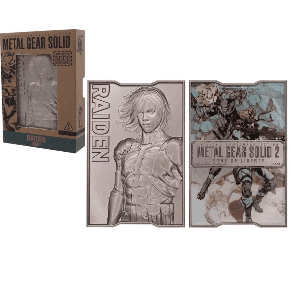 L’eroe di Metal Gear Solid 2, Raiden, viene coinvolto in un’operazione di salvataggio quando il gruppo terroristico Sons of Liberty attacca e rapisce il Presidente degli Stati Uniti. Questo lingotto di metallo stampato su due lati celebra le sue azioni ed è limitato a 5.000 esemplari in tutto il mondo. È numerato singolarmente e viene fornito con un supporto da esposizione nella sua scatola di presentazione.